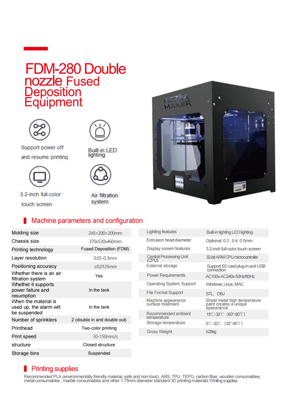 Nezha Maker ™ FDM-280D double nozzle fused Deposition Equipment