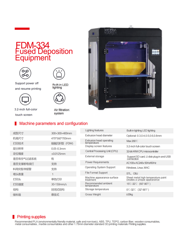 Nezha Maker ™ FDM-334 Fused Deposition Equipment